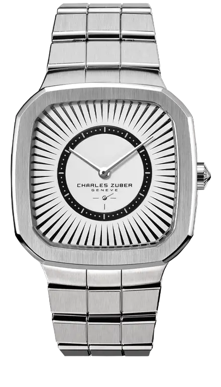 Introducing the exceptional Perfos 39mm timepiece, exquisitely crafted to embody the finest Swiss horology. With a polished stainless steel strap, a pristine white dial with 60 reflective contrasting indexes, and a recognizably unique shape, this watch is truly unmistakable.
